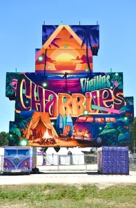 2BE-MAD réalise des décors spectaculaires pour les festivals, les théâtres, les villes et les compagnies : totems de containers, traversées de rue lumineuses, animaux géants, plateformes scéniques et habillages monumentaux.